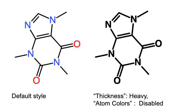 Adjust styling like atom colors, thickness (bold/heavy lines), and transparency