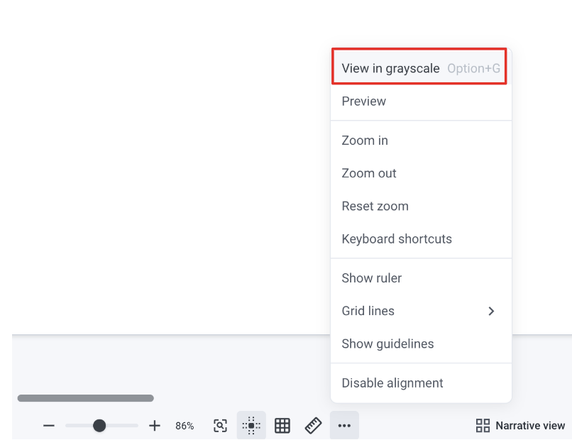 You can toggle grayscale mode directly from the Canvas using multiple options: