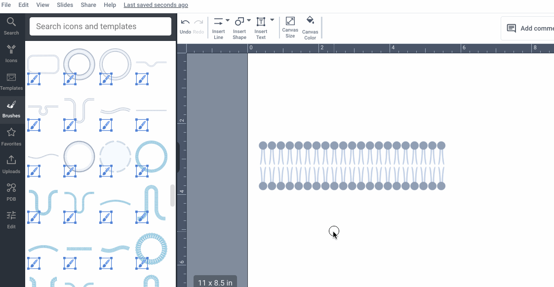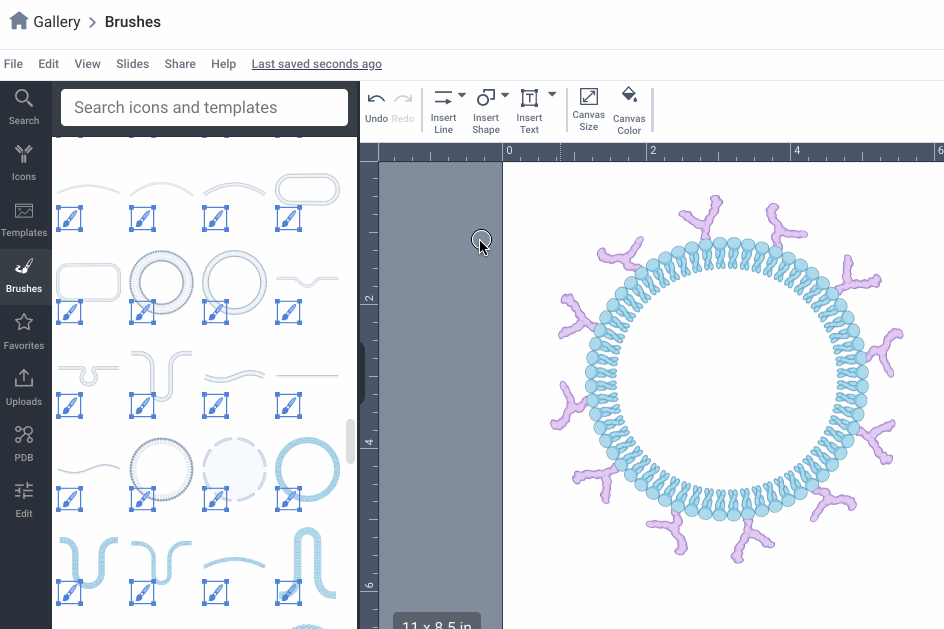Brushes in BioRender help you quickly draw repeating icons like membranes and filaments. This guide covers how to customize brushes to suit your figure, from adjusting size to converting brushes into editable icons.