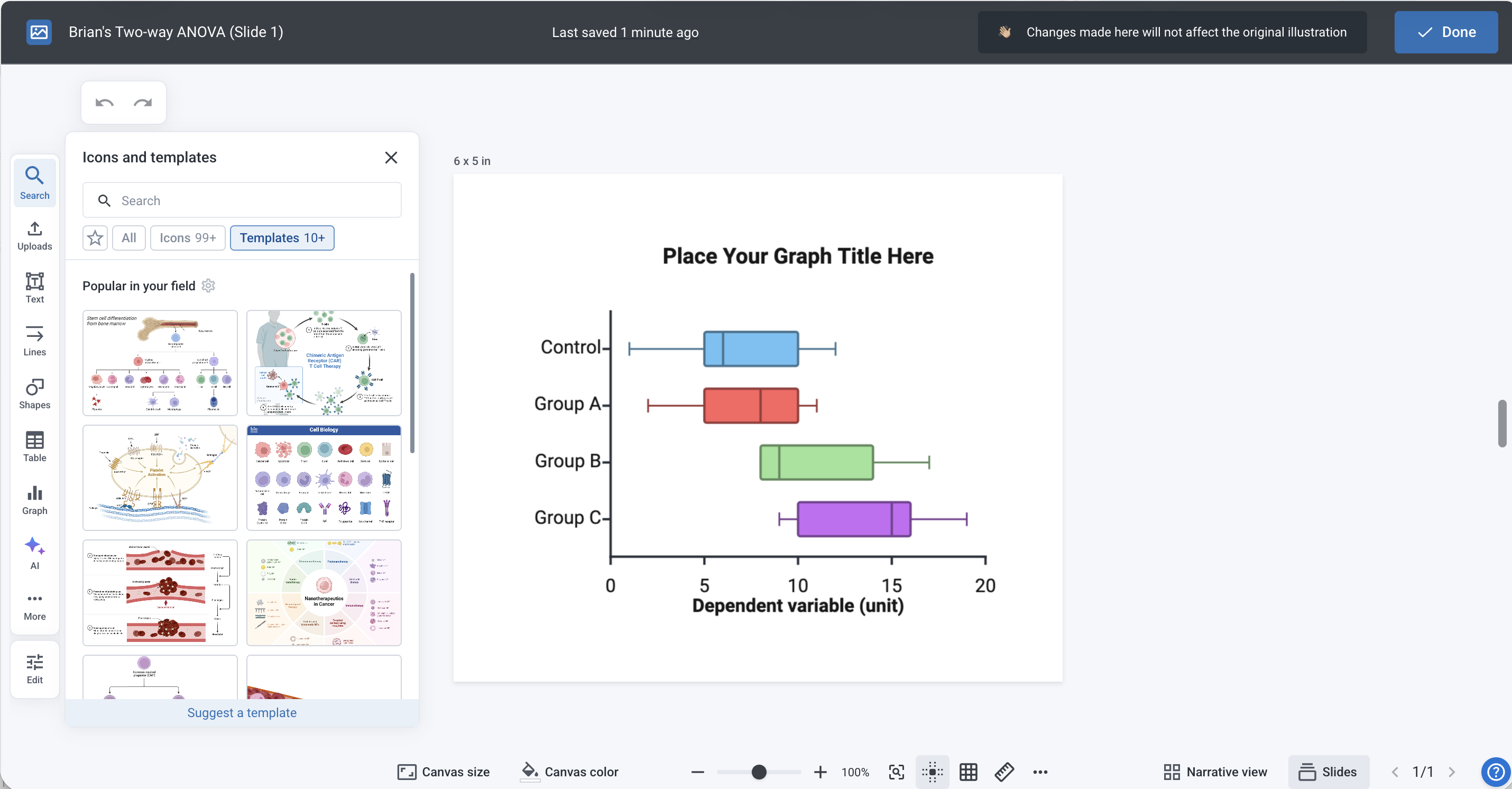 You can easily import graphs into your BioRender poster and make visual edits directly within the poster layout. This guide walks you through how to add and customize graphs without affecting the original dataset or file.