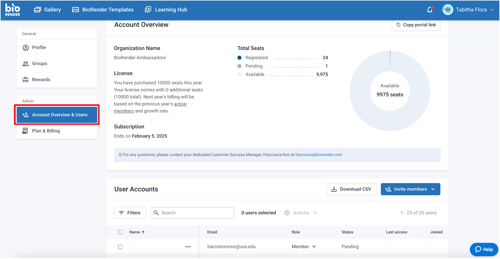 - Open the Account Overview & Users tab