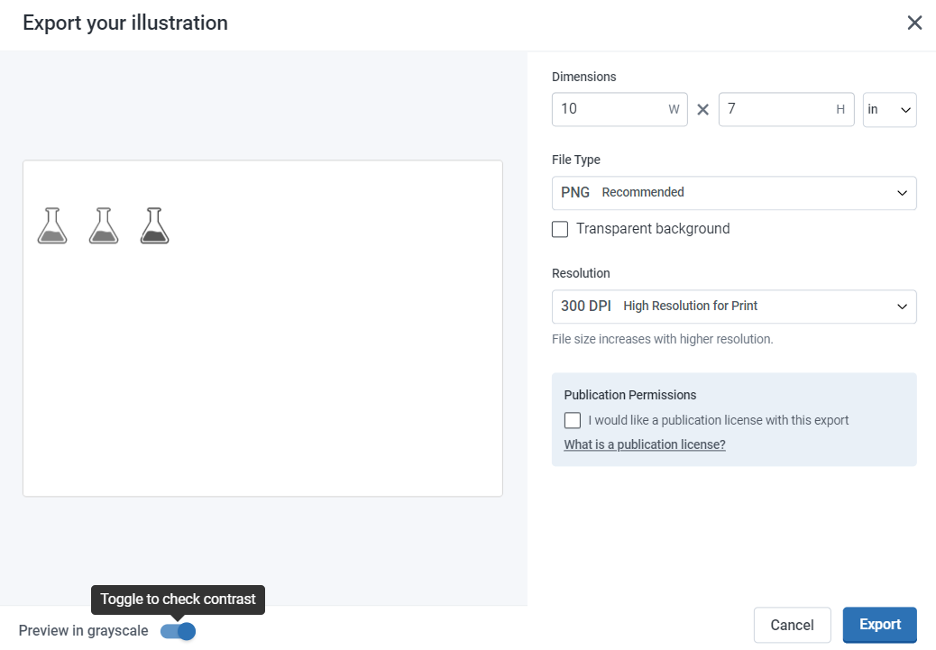 BioRender includes a built-in View in Grayscale feature that helps you assess the contrast of your illustration. This ensures your figure is easily understandable across various formats and audiences. High-contrast visuals improve accessibility and readability, especially for: