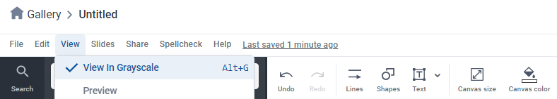 You can toggle grayscale mode directly from the Canvas using multiple options:
