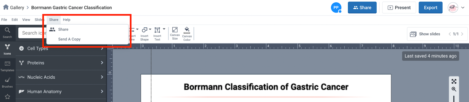 - The difference between "Share" and "Send A Copy" in BioRender