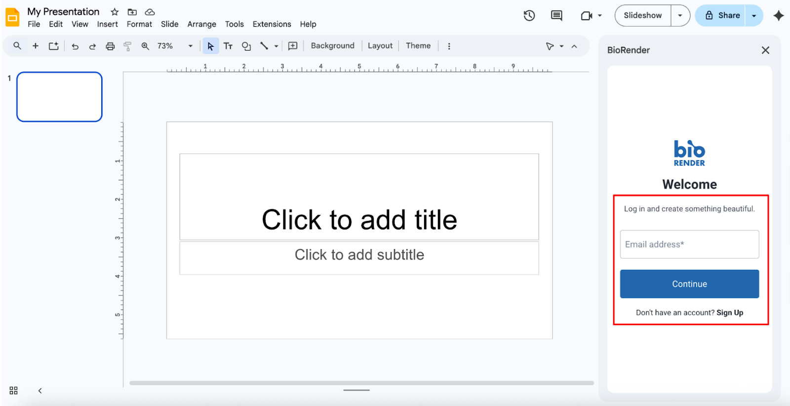 - Congratulations! The BioRender Add-on is now ready to use. You begin inserting and updating BioRender figures directly into your Google Slides presentations.
