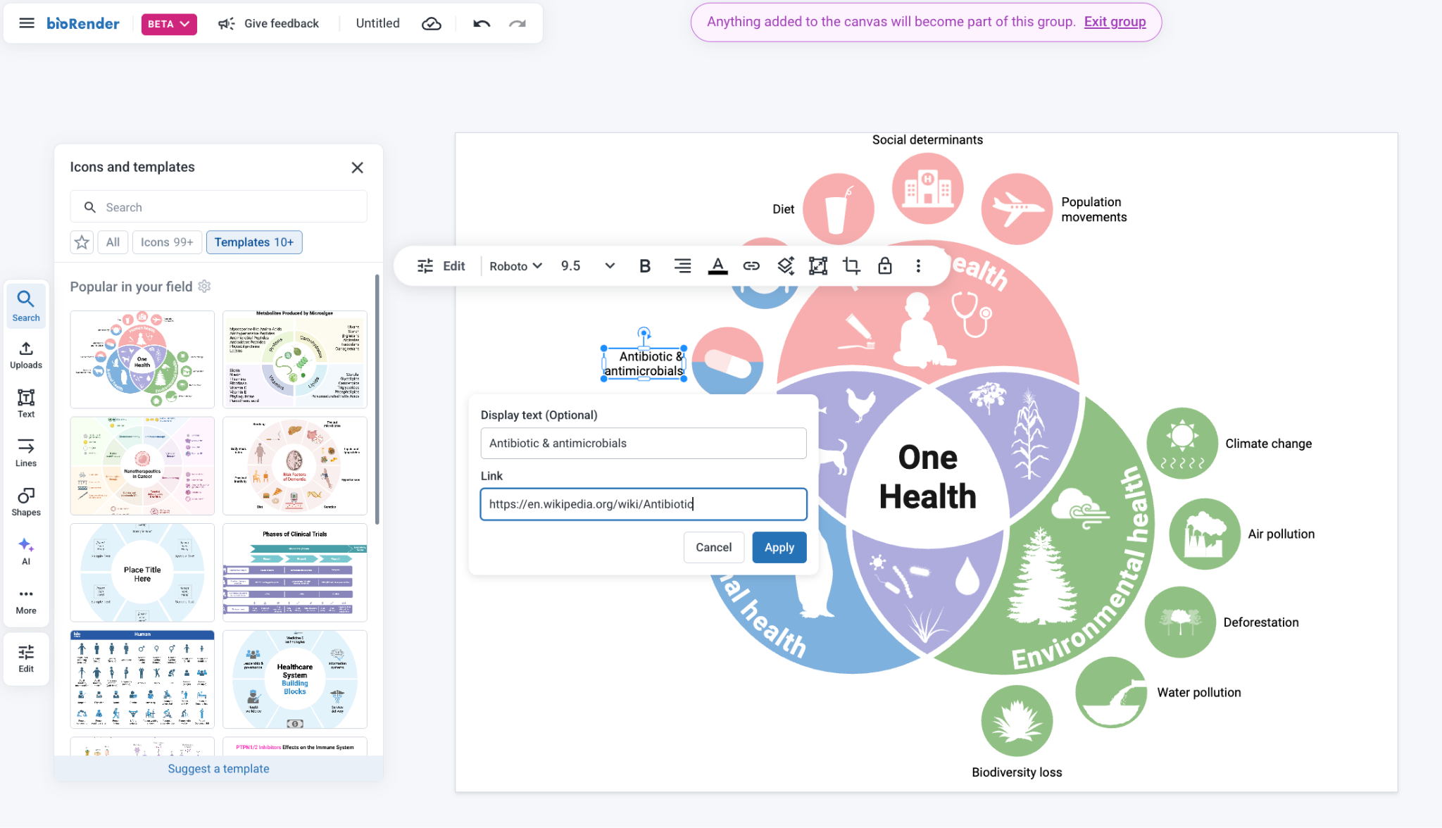 Connect your illustrations to external content, reference publications, or other BioRender files using the hyperlink feature.