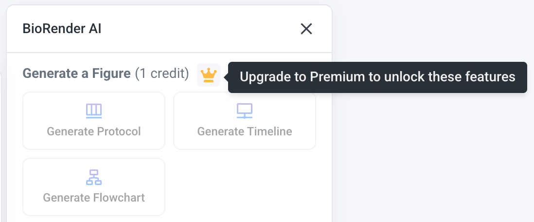 As a Free user, you can click the crown above the figure generation tools in the BioRender AI menu.