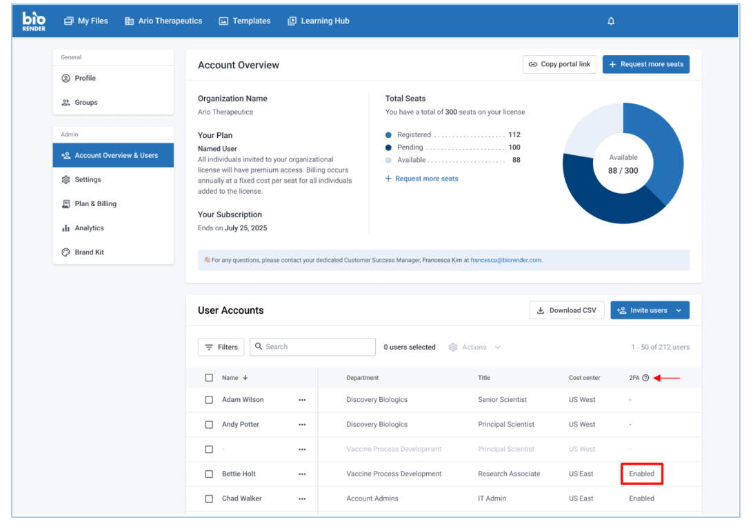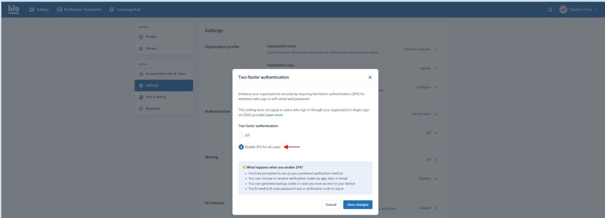 How to enable and manage 2FA in BioRender as an administrator