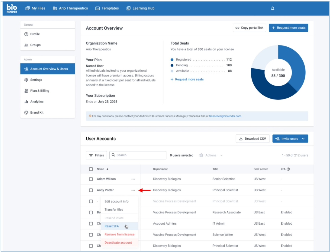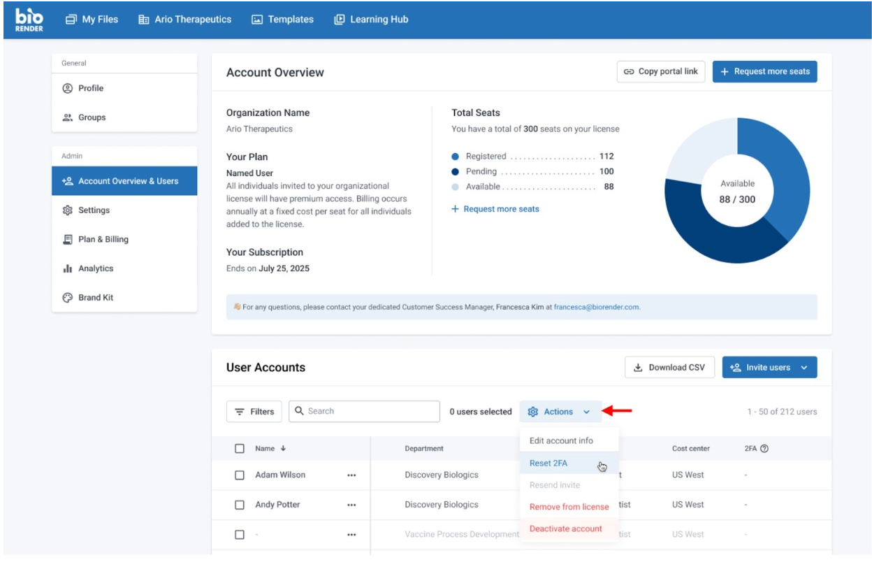 How to reset 2FA for users in BioRender if you are an administrator