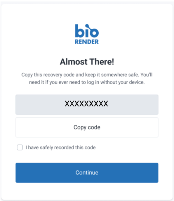 If it is your first time setting up 2FA, you will be prompted to save your recovery code. We recommend copying it and keeping it somewhere safe.