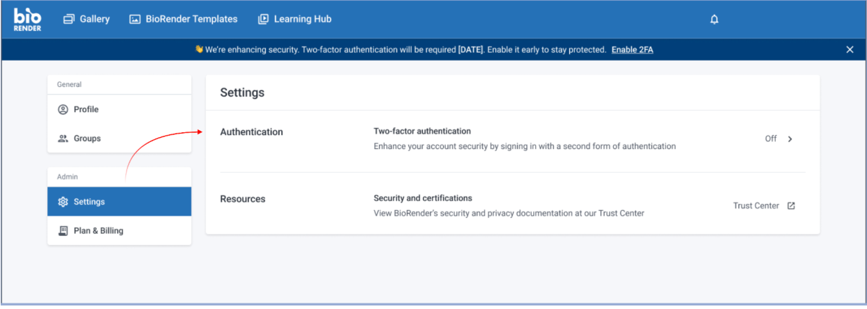 BioRender is rolling out 2FA in phases. Your setup timing may vary depending on where your account falls in the phased rollout.