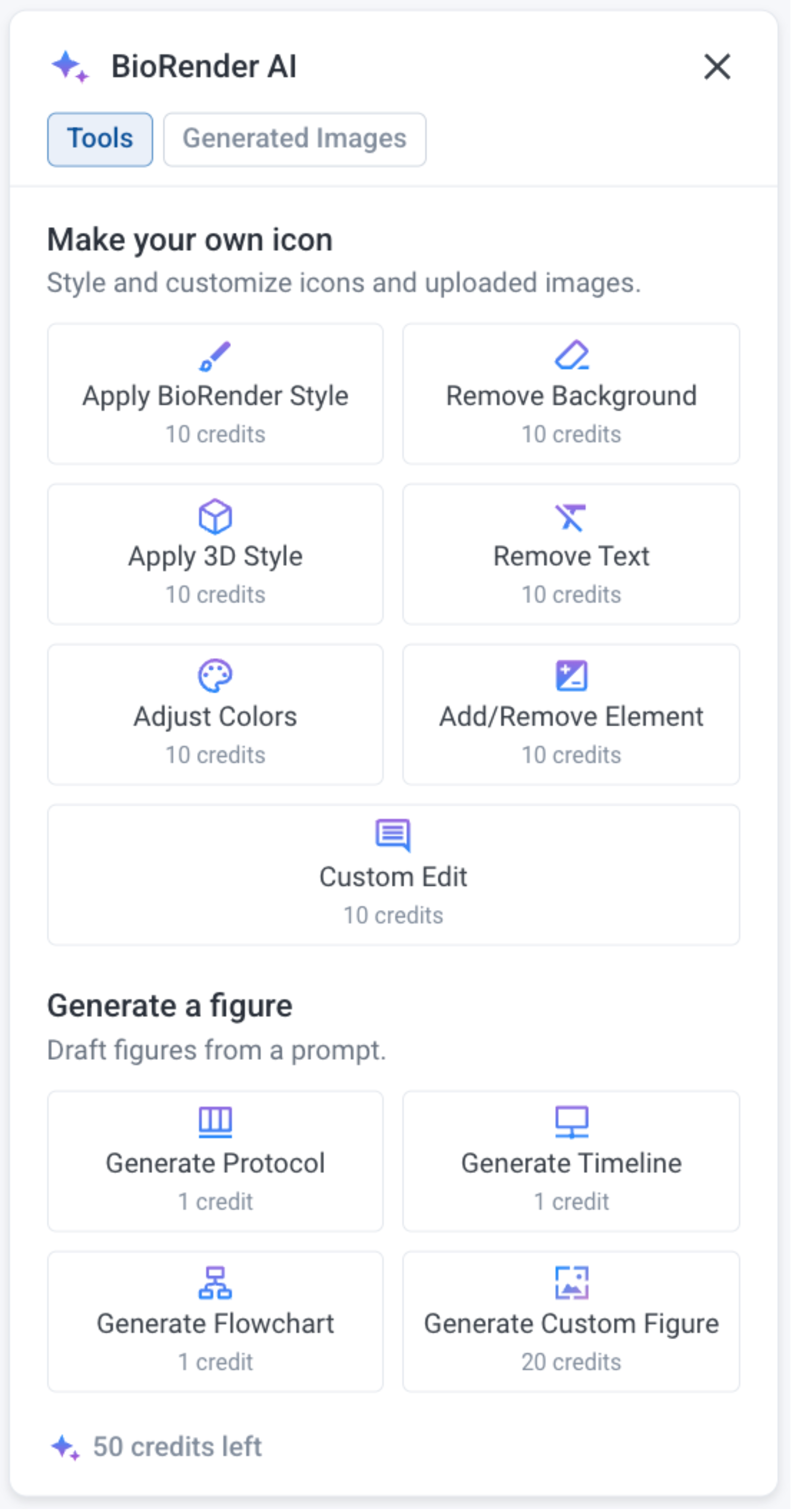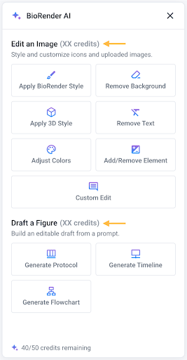 AI features are powered by credits, which are consumed whenever someone uses an AI action in BioRender.